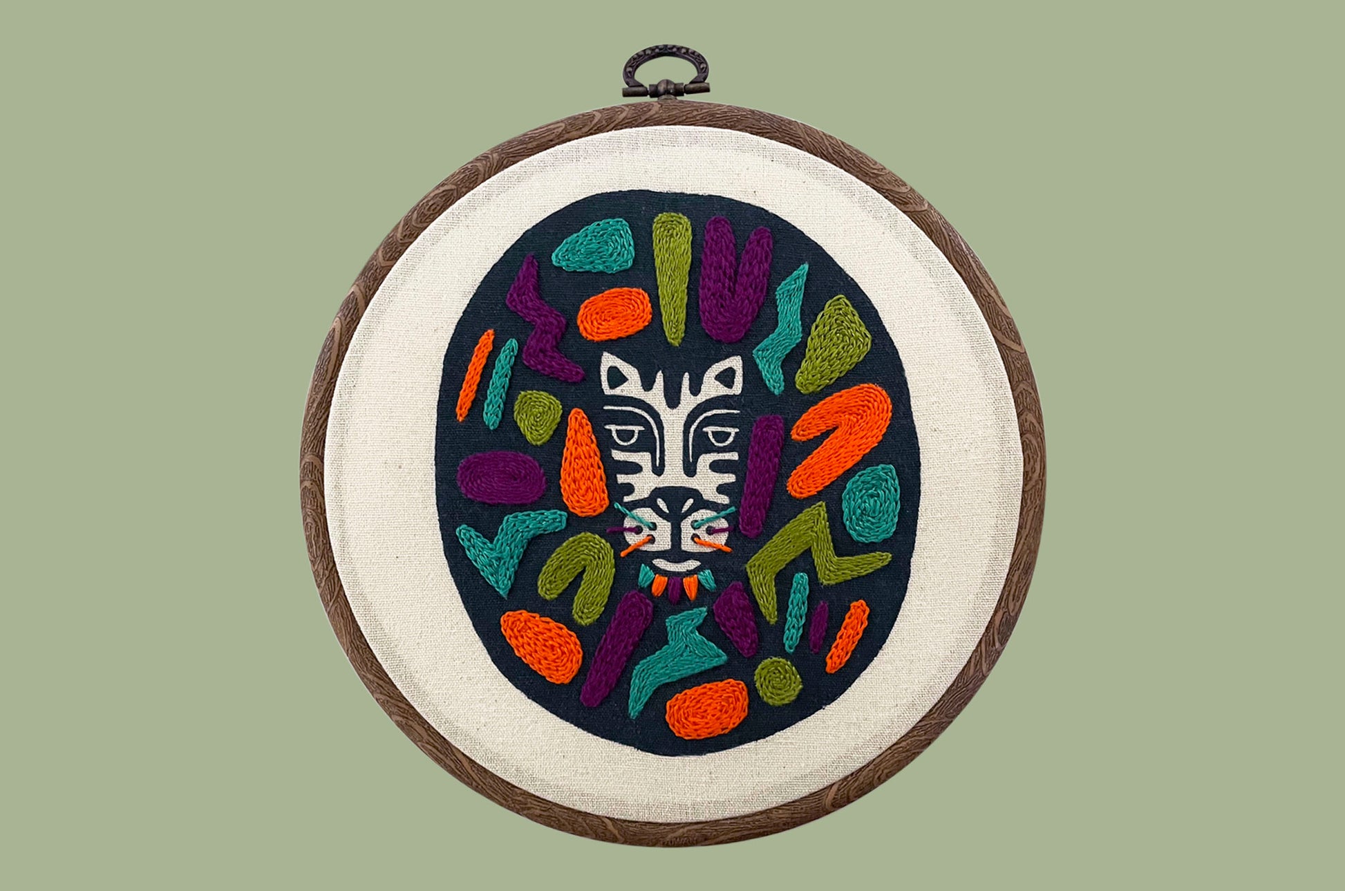 El León es un bordado nivel principiante / intermedio. Te ayudará a practicar tres puntadas básicas: el punto tallo, el punto cadena y el punto relleno.
