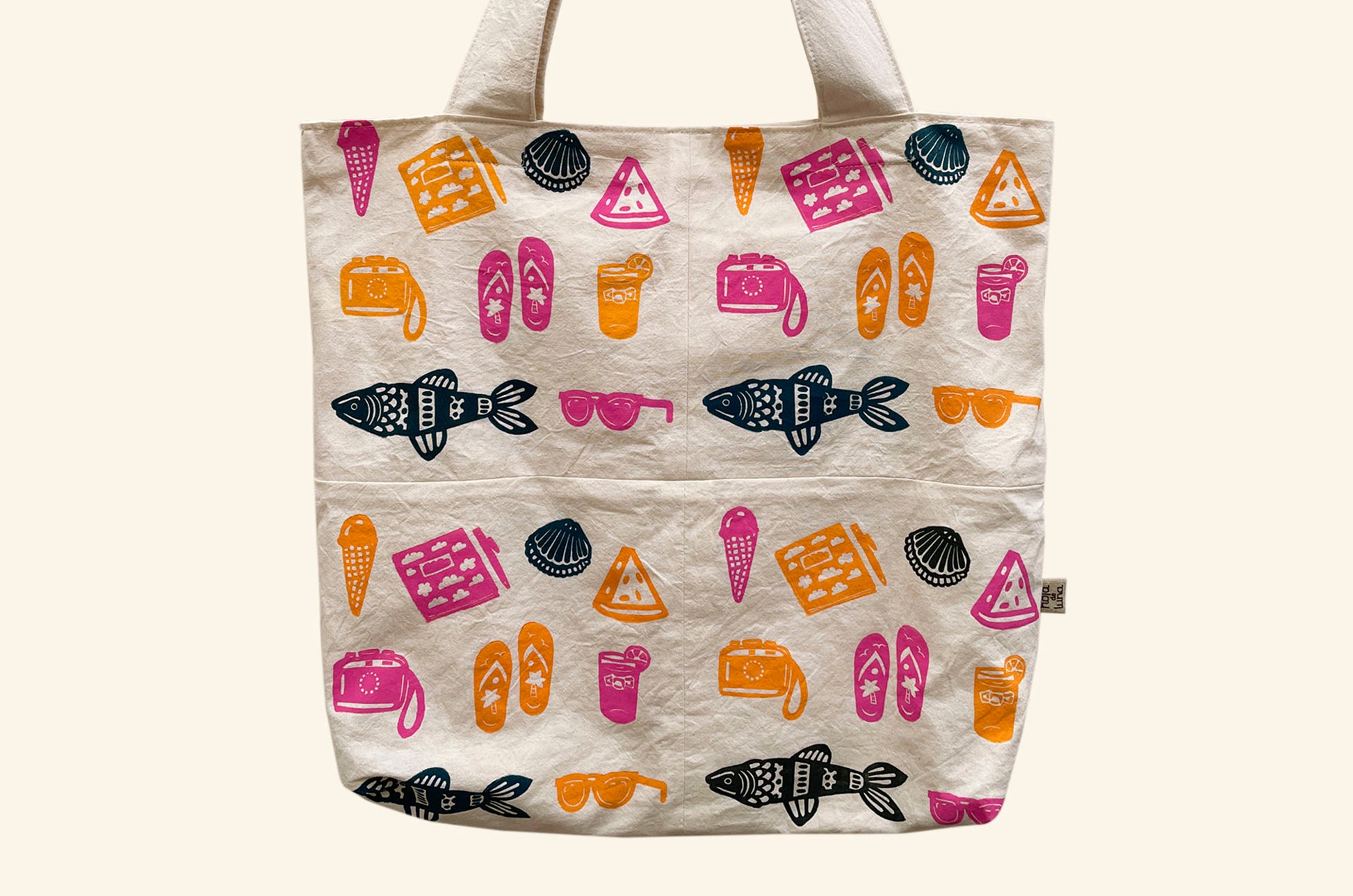 Todas las Tote bags están confeccionadas en el taller e impresas artesanalmente con la técnica de linograbado, si quieres saber más sobre este proceso de impresión te invito a visitar En el Taller
