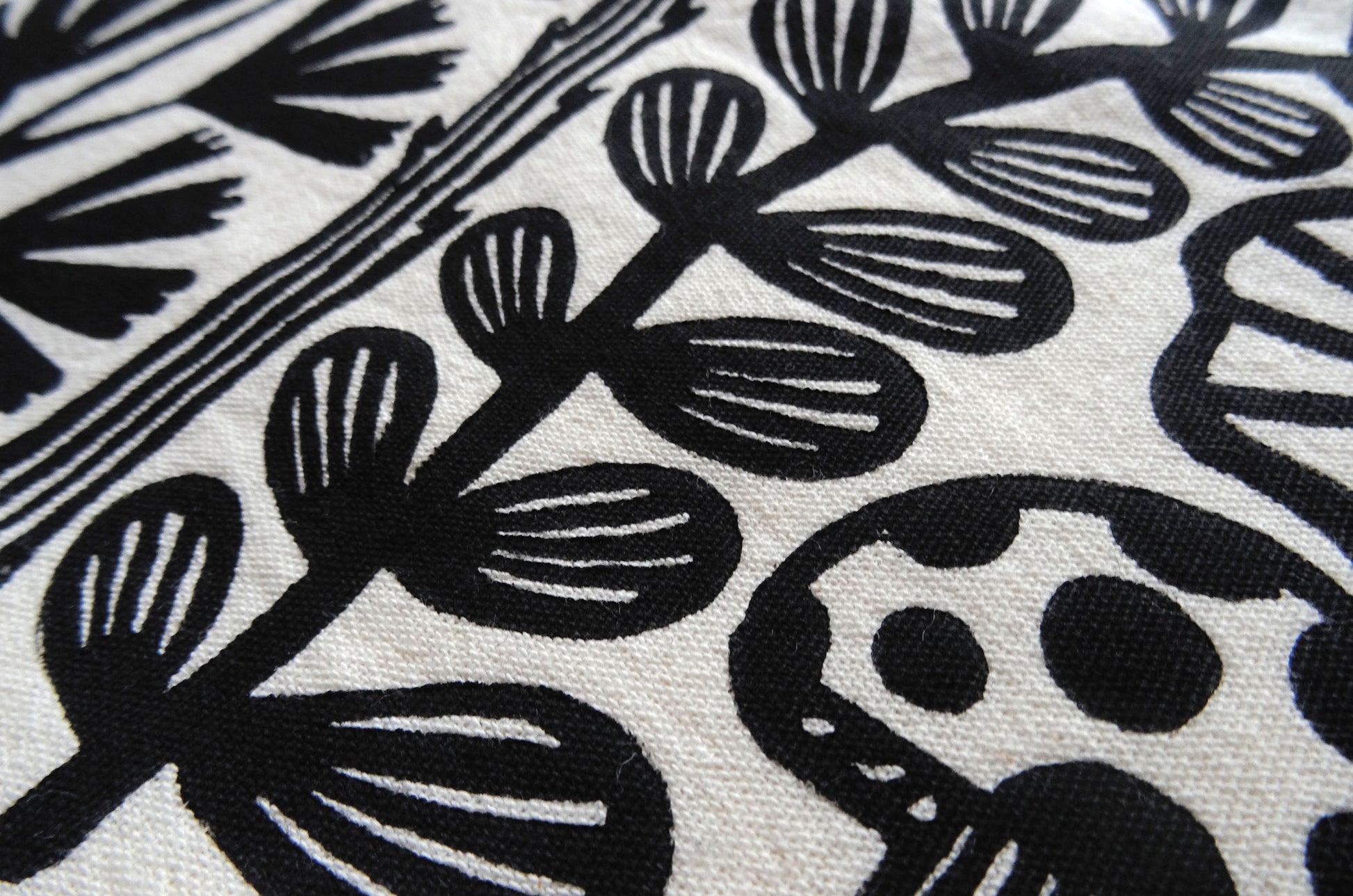 La impresión está hecha artesanalmente con la técnica de linograbado, si quieres saber más sobre este proceso de impresión te invito a visitar En el taller.